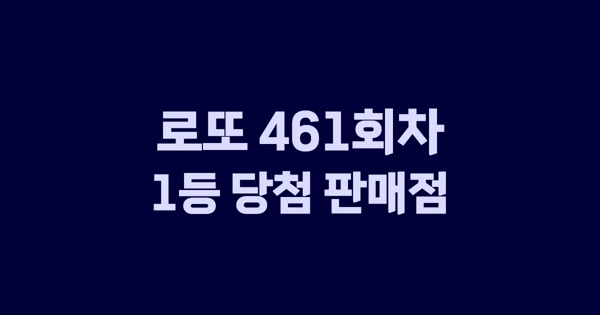 로또 461회차의 1등 당첨 판매점과 당첨 지역 정보입니다. 461회의 1등 개수는 총 6개(자동 4개, 수동 2개, 반자동 0개)입니다. 당첨 지역은 서울, 대구, 경기, 충남 4개 지역입니다.