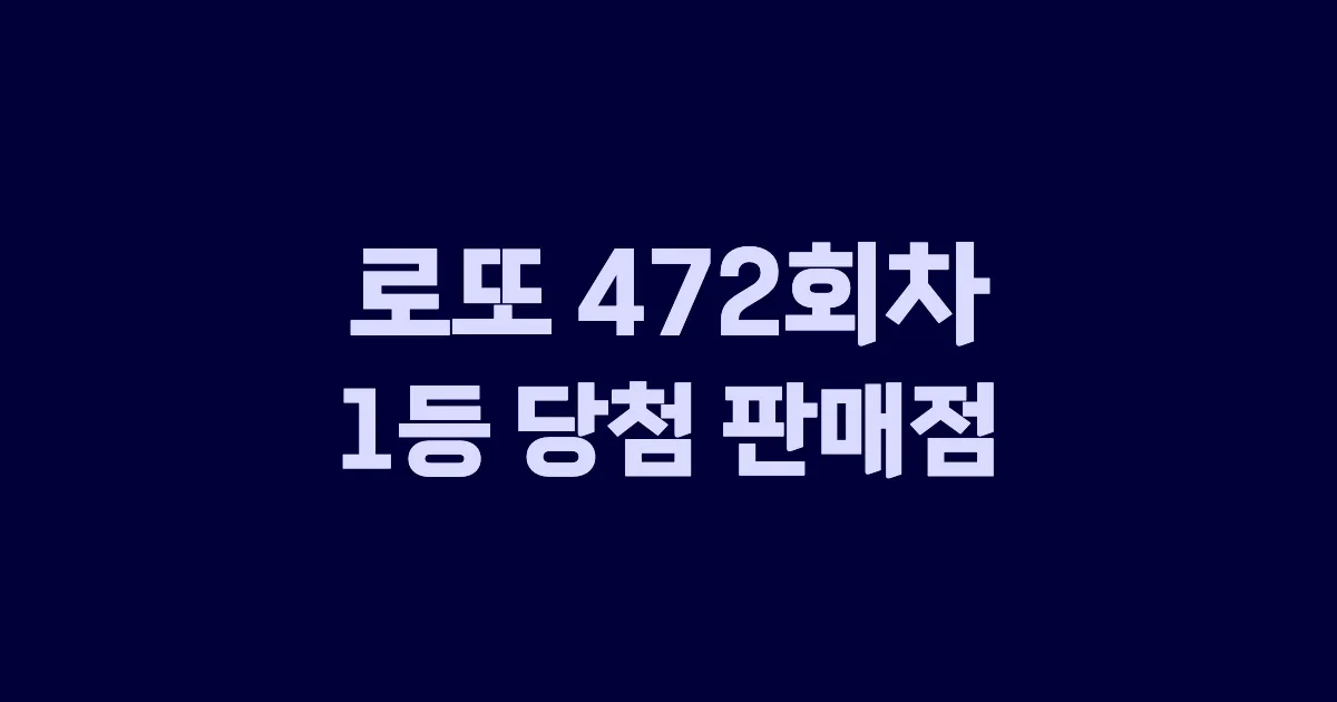 로또 472회차의 1등 당첨 판매점과 당첨 지역 정보입니다. 472회의 1등 개수는 총 7개(자동 6개, 수동 1개, 반자동 0개)입니다. 당첨 지역은 부산, 대구, 인천, 광주, 경기, 전북 6개 지역입니다.
