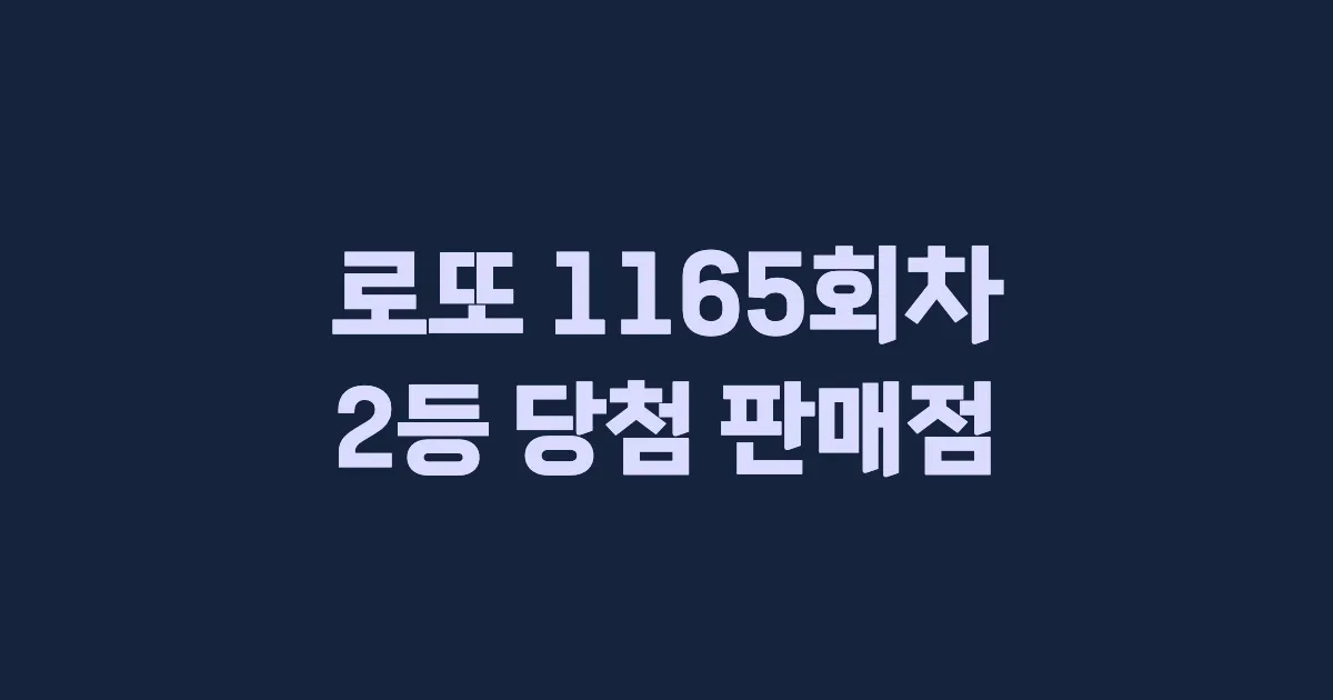 로또 1165회차 2등 당첨 판매점 및 당첨 지역